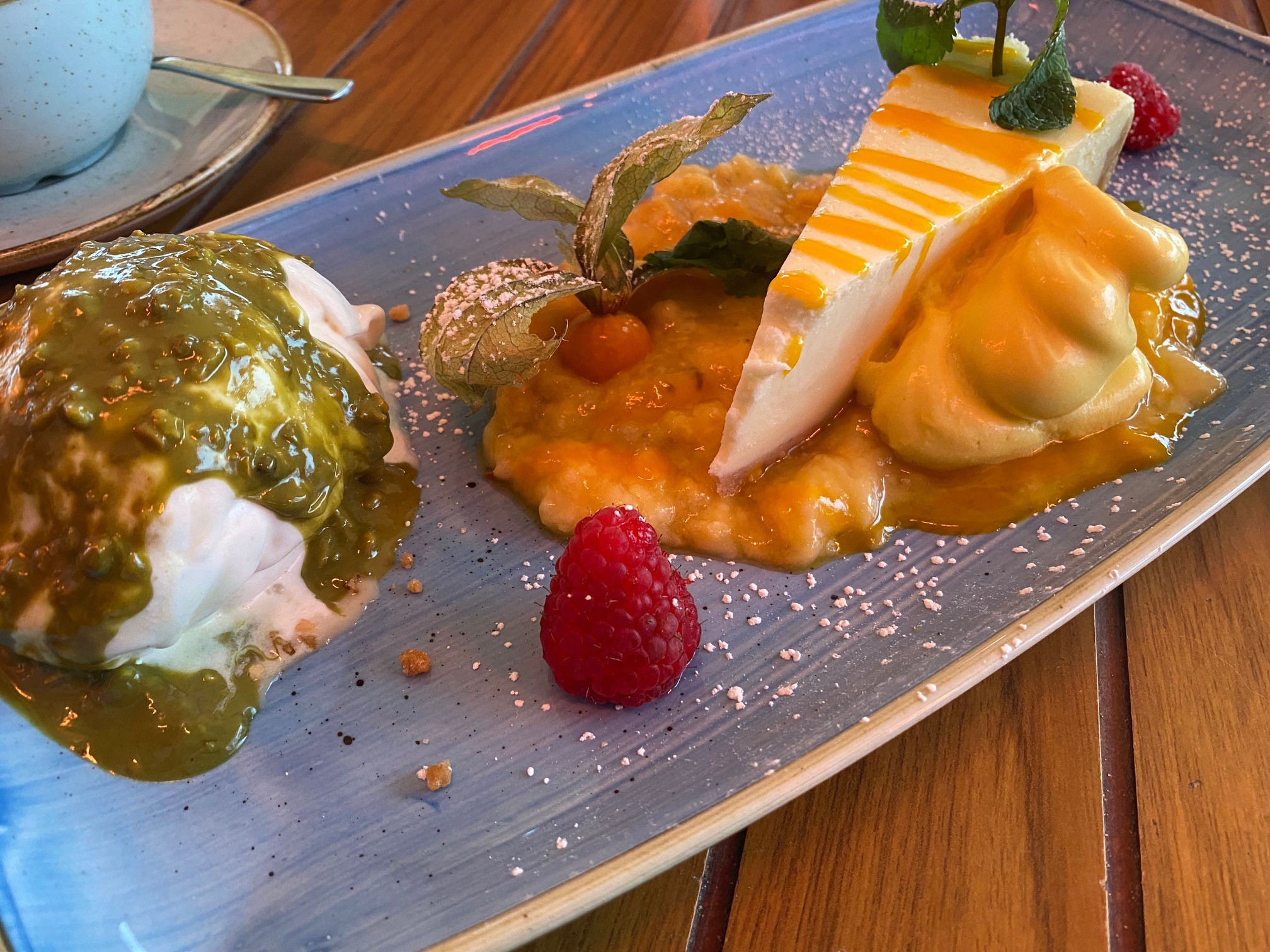 Übrigens: Vorsicht vor Klischees. Rechts von uns sitzt ein älterer Herr, stattlich mit schlohweißem Haar. Ihm gegenüber in unserem Blickfeld eine bildhübsche Frau, deutlich jünger als Soni. „War ja klar, alter weißer Mann mit Geld und seine Gespielin“ denken wir und verdrehen innerlich die Augen. Als wir später gehen, sehen wir neben ihm – vorhin nicht in unserem Blickfeld – eine ebenso bildhübsche Frau, ebenso alt wie der weißhaarige Mann. Und es ist unverkennbar eine Vater-Mutter-Tochter-Konstellation dort am Tisch.