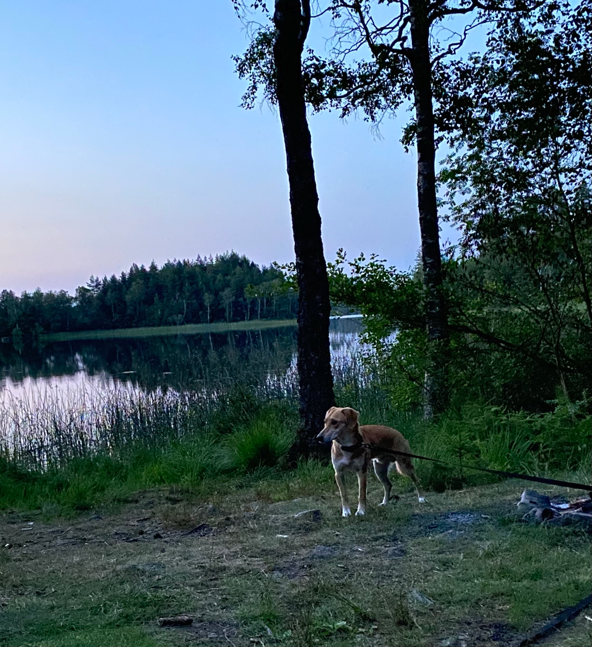 Gerade als ich mich mit einem leichten Schweißausbruch und der Feierabendzigarette aufs Sofa plumpsen lasse, kommt eine schwedische Familie an den See.