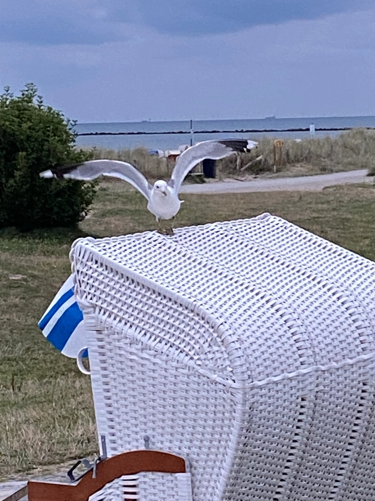 Dank Hilde sitzen wir nun also hoch im Norden wieder auf einem Sofa und freuen uns darüber, dass der Kanister Weißwein doch in den kleinen Kühlschrank passt. Und wenn wir den Hals recken, sehen wir das Meer. Das mit dem Hals recken sind wir ja gewohnt, anders sieht man zu Hause ja auch nicht, was die Nachbarn so treiben.