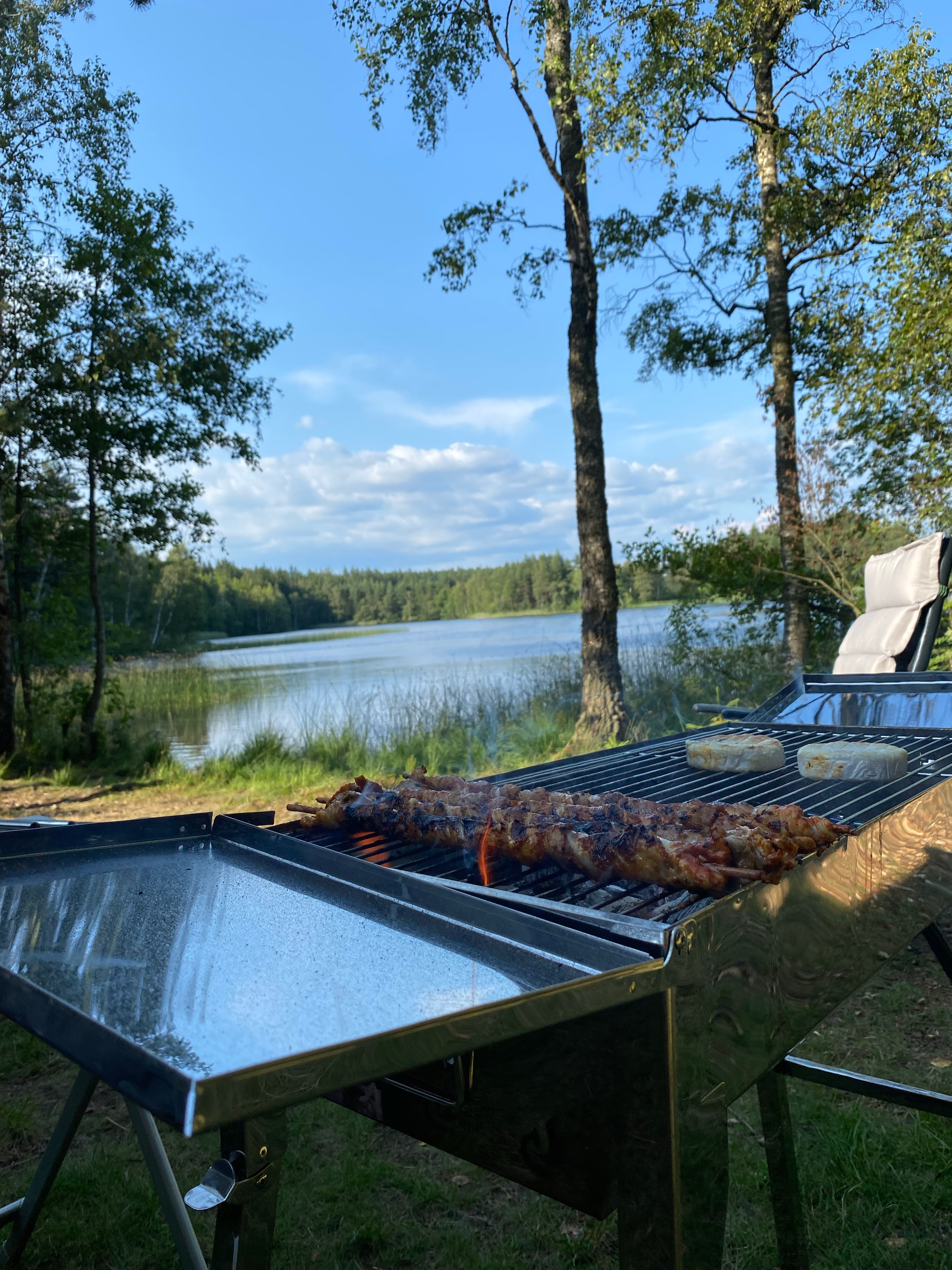 „hmmhmm“ antworte ich, während ich den kleinen Alukoffer mit dem Grillbesteck öffne und das Weiderindersteak auf dem Edelstahl-Klapp-Grill elegant wende. In der linken Hand habe ich ein gut gekühltes Bier, mein Blick schweift über den spiegelglatten See, in dem sich die Abendsonne in sattem orange-rot spiegelt.