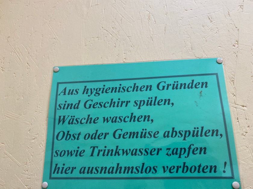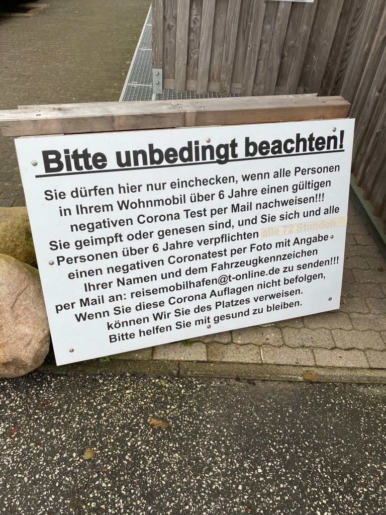 Auf dem Klo soll ich die Tür festhalten, wenn es windig ist. Geschirr spülen, Gemüse waschen und jeder andere Missbrauch des Waschbeckens ist strengstens verboten. Wenn ich meinen Impfausweis nicht binnen 72 Stunden per E-Mail versende, werde ich des Platzes verwiesen. Und durch die Schranke fährst Du gefälligst nur einzeln, die schließt nämlich automatisch und schnell!!!!!
