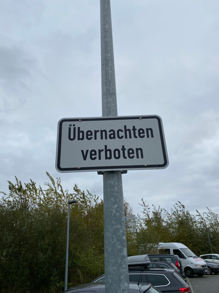 Ich kriege mich fast nicht mehr ein vor Lachen – genau so geht es mir auch. Wenn ich überhaupt geschlafen habe, dann nur kurz und mit laufender Unterbrechung. Ständig hatte ich das Gefühl, jemand steht direkt am Walter, der LKW hinter uns löst ein Erdbeben aus und die Möwen kreischen mir ins Ohr. Fehlt nur noch, dass ein Parkplatzwächter mit der Taschenlampe zu uns reinleuchtet. Ach ja, hat er ja auch. Kurz nach 6, als ich schon aufgestanden war.