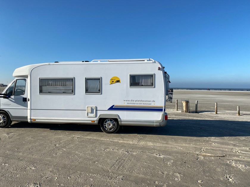Am nächsten Morgen hören wir die Loreley wieder singen … ähm die Nordsee rauschen. Um 5:30 bin ich fertig mit schlafen, die geliebte Platzbesetzerin und Karl natürlich noch nicht. Ich schleiche durch das Wohnmobil und will die beiden nicht wecken. Aber bei weniger als 15 m² ist man mit Schleichen auch schnell fertig.