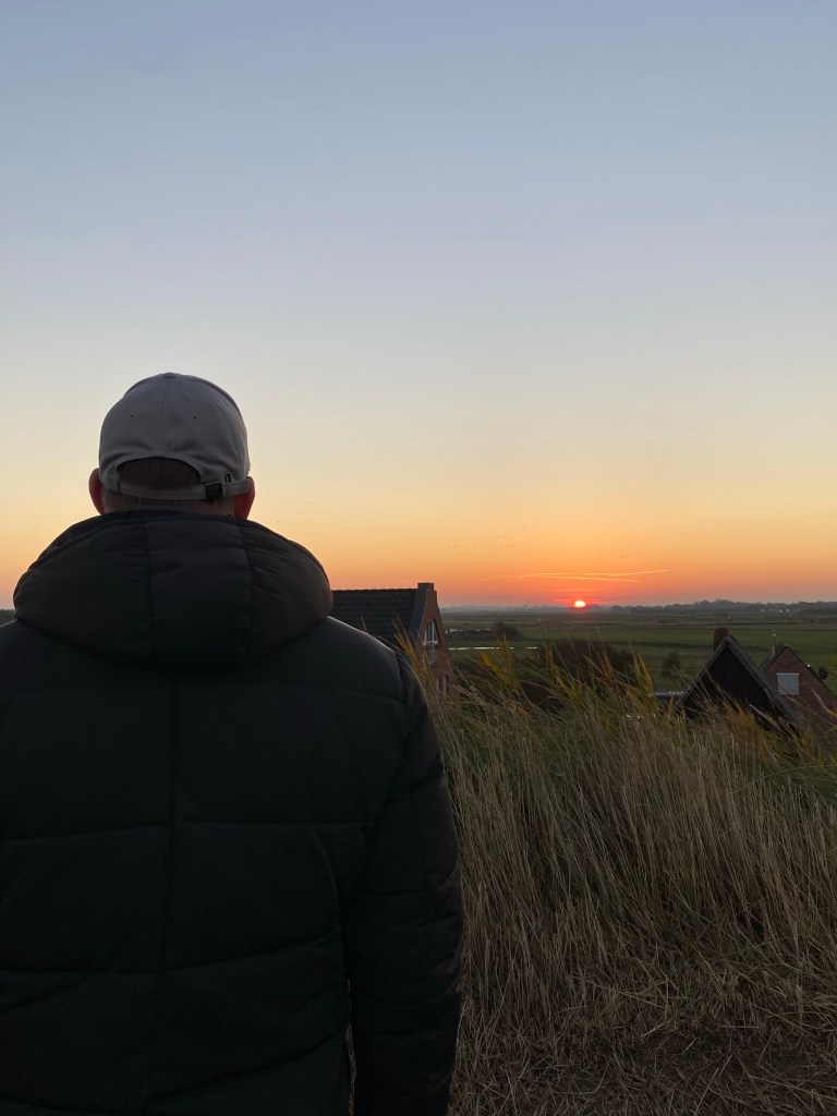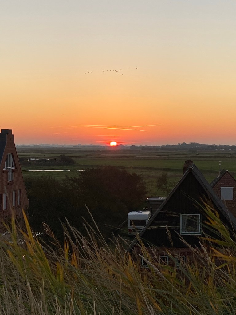 Wir machen uns also auf den Weg, müssen zweimal über den Deich, dann vorbei an ganz niedlichen, kleinen Reetgedeckten Häusern, Salzgras in den Vorgärten und schon sind wir da.
