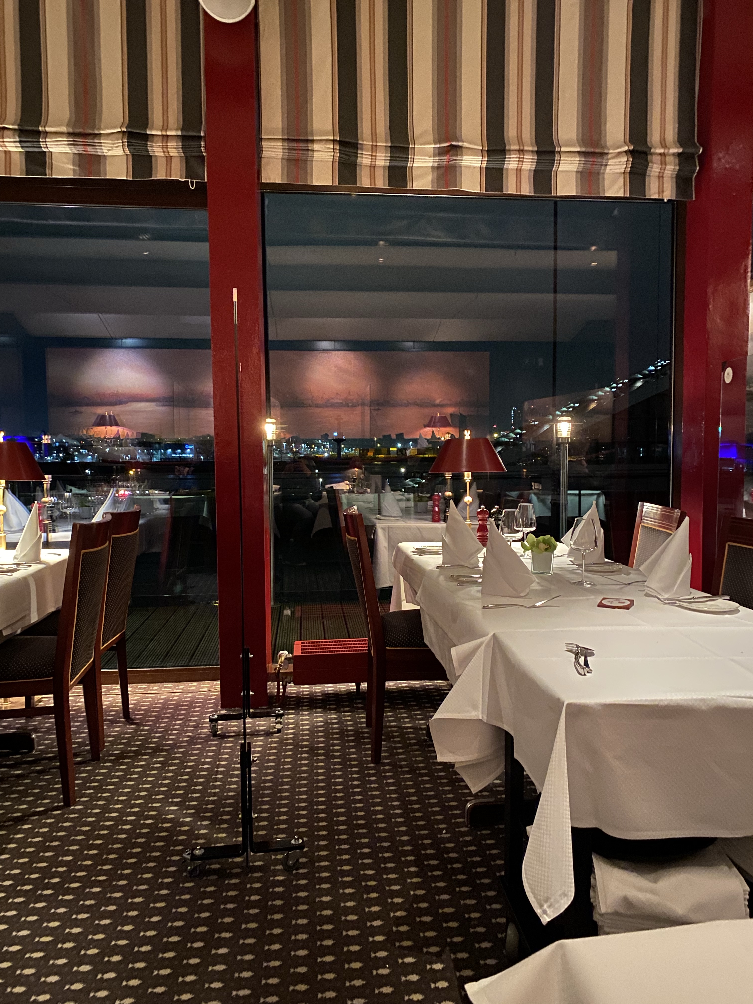 Die nächsten drei Stunden werden wir verwöhnt, wie es uns sonst nur in den Amtsstuben unseres kleinen Heimatdorfes passiert: ein gediegenes Ambiente, Blick auf den Hafen, ein extrem aufmerksamer, aber unaufdringlicher Service. Nicht zu vergessen die Hamburger Kodderschnautze, mit der jeder Gang und jedes Glas Wein begleitet wird.