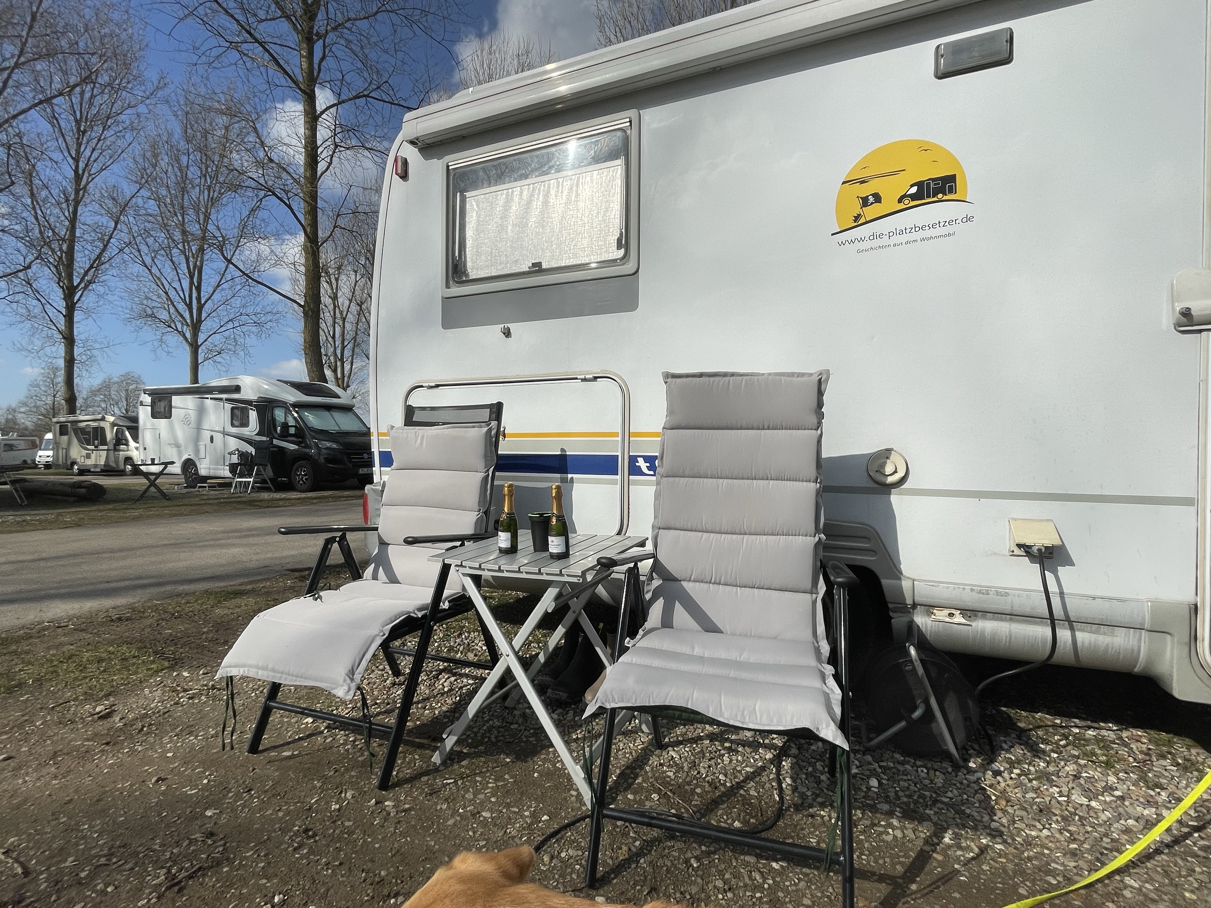 Dreiklang des Wohnmobilisten: auf die Rampen fahren, Strom anschließen, Klappstühle raus. ähm, ja? Wie denn sonst?
