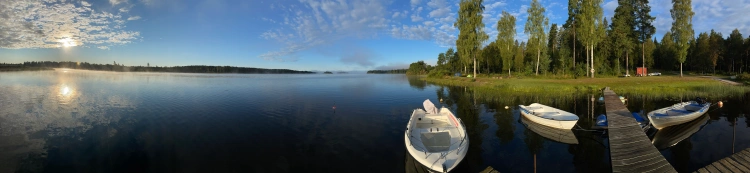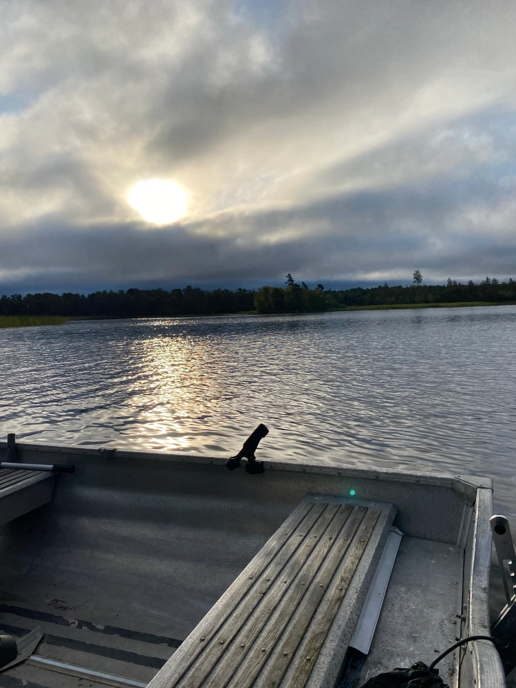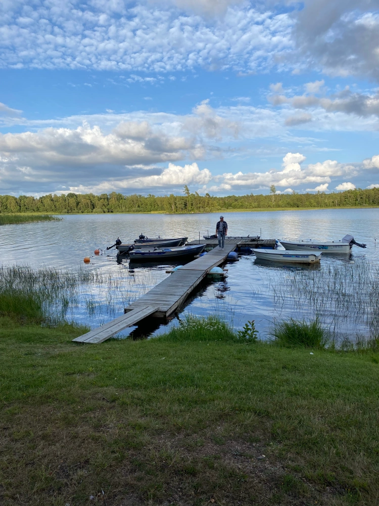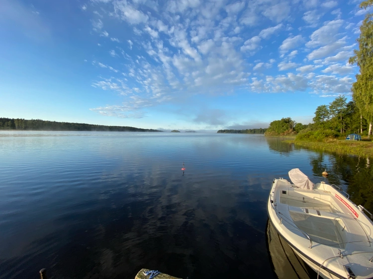 Irgendwann kommt auch die Schlafmütze ans Tageslicht, welches inzwischen gleißender Sonnenschein ist. Wir gehen schwimmen, lungern auf dem Sofa in der Sonne, essen uns quer durch unsere Beute aus dem Supermarkt. Satt und müde gibt es einen Mittagsschlaf, bevor sich der Tag seinem Höhepunkt nährt. Wir hatten uns für den Nachmittag ja ein Boot reserviert, und diesmal, jaha – diesmal! Ich werde da draußen das Abendessen fangen. Wer braucht schon einen Elch im Wald, wenn er Hecht, Zander und alle anderen Fische im Überfluss auf dem Grill haben kann?!