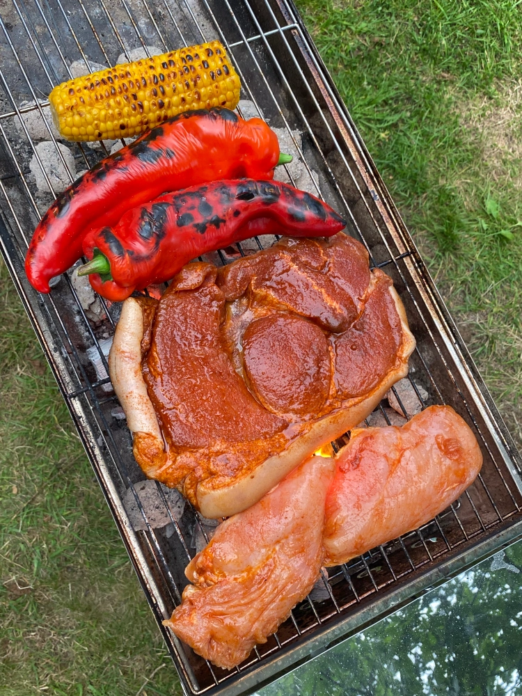 Mais! Mais geht immer. In der Suppe, zu Hühnchen, auf dem Grill und auch zu Fisch. Außerdem leuchtet Mais so schön im Wasser und irgendwo habe ich mal gelesen, das sei wichtig. Wie es der Zufall will, haben wir eine kleine Dose Mais an Bord und bei der „wir-essen-alle-Vorräte-auf“ Aktion wohl übersehen.