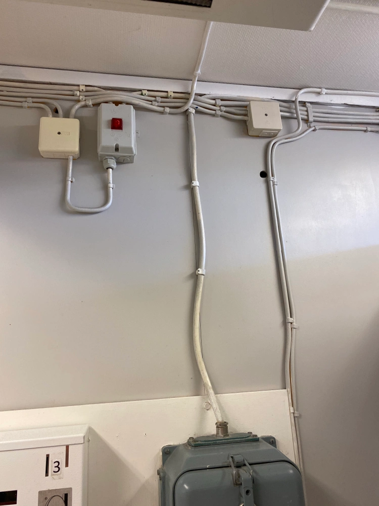 Die Kabinen selbst sind wirklich gerade so groß, dass man darin duschen kann, zum Umziehen stehen zwei weiße Plastikstühle im großen Raum davor. An der Wand eine abenteuerliche Verkabelung – und drei Münzautomaten mit den Nummern 1, 2 und 3. Bei genauem Hinschauen lassen sich diese Nummern dann auch auf den Türen der Duschkabinen erahnen.
