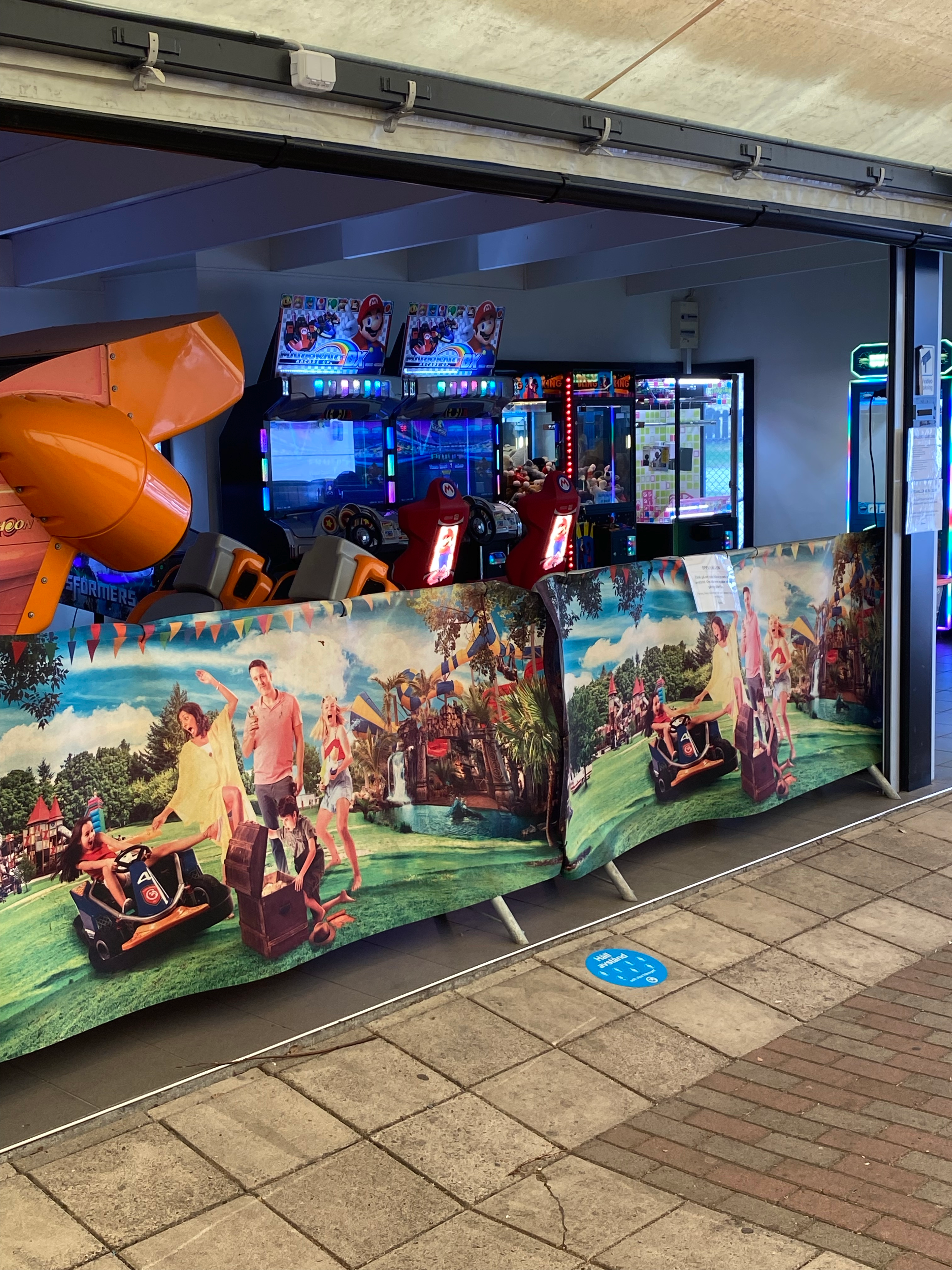 Das erste Schild welches ich sehe, nachdem wir die Reception passiert haben, ist CAMPODROM. Naja, es ist kein Schild, es ist eine Wand. Alles hier ist zu groß, zu bunt, zu viel. Das hier ist Disneyland für Camping.